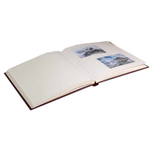 Bokbundet album med 20st vita självhäftande syrafria blad i mått 29x32. Yttermått på albumet är 30x33.