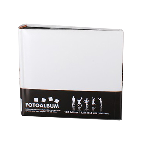 Bokbundet vitt album med läderkänsla. Fotofickor för 100st bilder i storlek 11x15cm. Med CD-ficka och skrivfält.