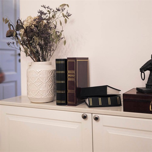 Exclusive Line Super 200 i svart är ett elegant bokbundet fotoalbum med extra kraftiga pärmar som utstrålar kvalitet. Albumet rymmer 200 foton i storlek 10x15cm, organiserade i fotofickor med tillhörande negativficka - perfekt för dig som vill bevara både bilder och originalnegativ på ett tryggt sätt.