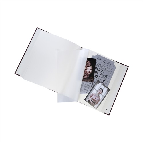 Bokbundet fotoalbum med vita kartongblad och pergamynblad emellan. För 500 bilder i storlekar upp till 10x15 cm. Kan med fördel användas till alla bildstorlekar. Används med lim, fotohörn m.m.
