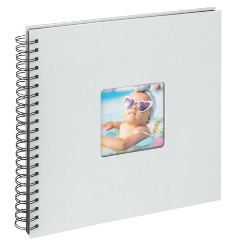 Spiralalbum med utskärning för personlig bild på omslaget. 50 svarta sidor.