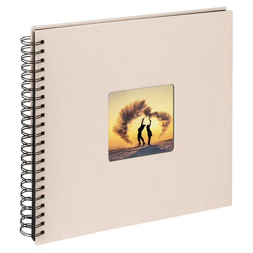 Spiralalbum med utskärning för personlig bild på omslaget. 50 svarta sidor.
