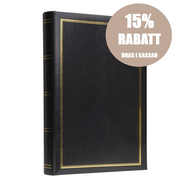 Håll dina minnen säkra i detta klassiska bokbundna fotoalbum, designat med ett enkelt men elegant omslag i konstläder med fina gulddetaljer.