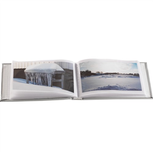 Det hårda bokomslaget skyddar dina bilder på ett tryggt sätt, medan de smidiga slip-in-fickorna gör det enkelt att placera och byta foton. Albumets rena form låter dina minnen stå i centrum, oavsett om det handlar om bröllop, resor, familjeliv eller livets små ögonblick.