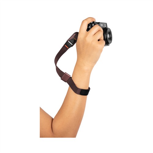 Handledsöglan kan låsa sig i öppet läge när du fotograferar, eller dras åt för extra säkerhet när du rör dig. När du inte använder den? Rulla ihop den runt handleden eller stoppa den i fickan – en smart magnet håller remmen på plats tills nästa fototillfälle.