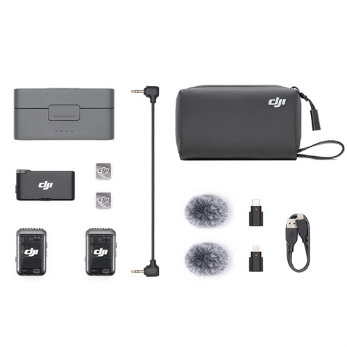 DJI Mic 2 startar automatiskt när du öppnar laddningsfodralet. Detta smarta fodral kopplar automatiskt ihop mottagaren och sändarna medan de laddas, så att du kan komma igång så snart du öppnar det. Det innehåller också både USB-C- och Lightning-adaptrar, vilket ger problemfri installation med dina föredragna inspelningsenheter.