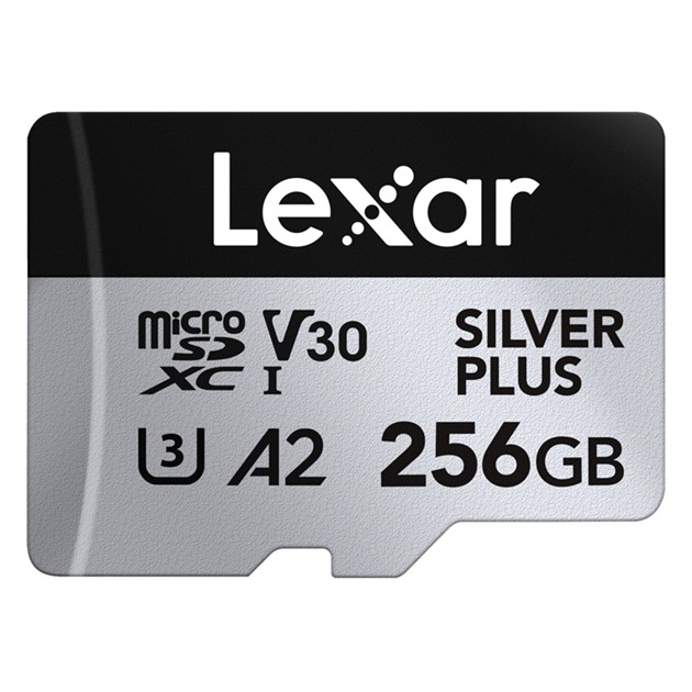 Lexar Professional SILVER PLUS microSDXC UHS-I-kortet har exceptionella läs-/skrivhastigheter på upp till 205MB/s och 150MB/s och stöder sömlös inspelning av FULL-HD och 4K-videor.