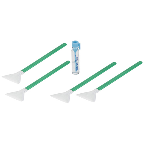Swabsen är speciellt framtagna för att användas på fullformatsensorer och är kompatibla med både Vdust Plus och andra vätskor från VisibleDust, som Sensor Clean (grön) eller Smear Away (röd).