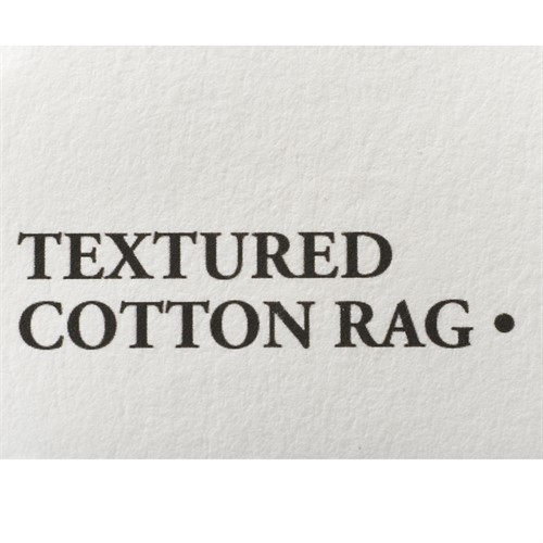 Silkespapper av 100 % bomull speciellt framställt för att möta behoven hos konstfotografer. Textured Cotton Rag är fritt från optiska vitmedel och uppfyller kriterierna för hållbarhet enligt ISO 9706. Kompatibel med pigmentbaserade skrivare.