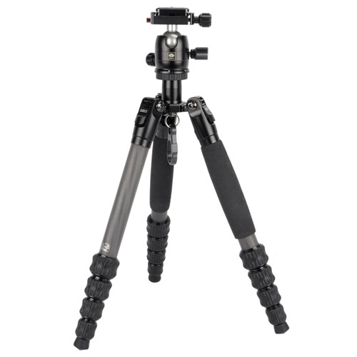 Lätt och starkt kolfiberstativ med fem bensektioner och medföljande kulled. Mycket användbart för resor.