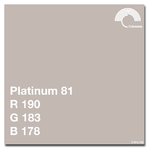 Colorama 2.72 x 11 m Platinum, bakgrundspapper för fotografering. Bakgrunden är monterad på stabil papperskärna med innerdiameter 5,4 cm. Colorama bakgrundspapper ger mycket liten reflektion och är tillverkat av kraftigt papper vilket ger god hållbarhet. Bakgrunden kan med fördel monteras på vägg eller tak med Manfrotto bakgrundsupphängning samt expander eller på två kraftiga stativ med bom. Se tillbehörslista nedan. Colorama är tillverkat till 90% av återvunnet pappersmaterial.