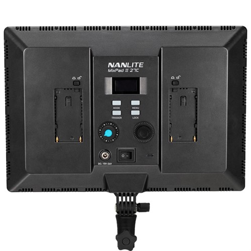 Strömadapter för kontinuerlig ström medföljer. NanLite Mixpad kan även drivas med batteri och använder då NP-F typ batterier. Vill du kunna använda belysningen on-location behöver du köpa till två stycken batterier. Glöm inte att även köpa en batteriladdare.