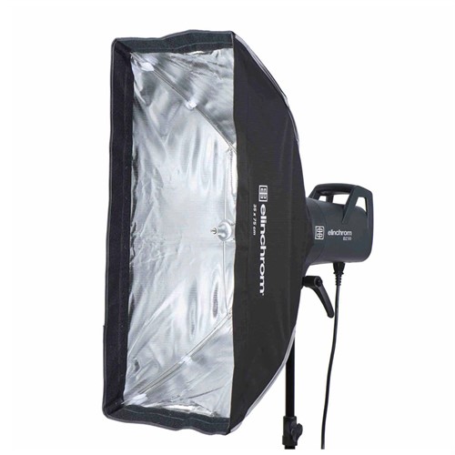 Elinchrom Stripbox 35 x 75 cm. Denna typ av softboxar är mycket enkla att fälla upp och ned tack vare smart paraplykonstruktion. Levereras med dubbla diffusordukar och raster. Adapter finns till de flesta studioblixtmärken och köps separat.