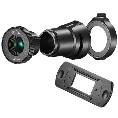 Ljusformaren kan användas på t.ex Godox H200R (Runda huvudet för AD200 Pro) , Godox AD100 Pro och Godox V1. Det går även att köpa till en adapter (AK-R25) som gör det möjligt att använda ljusformaren på Godox AD200 Pro och på de flesta kamerablixtar (t.ex V860III) på marknaden. Paketet innehåller en projektor-del, 65mm optik (AK-R27), Slidebox (AK-R26), Demo-slides och en adapterring (AK-R28), som används för runda blixtar. Optiken är tillverkad med precision och designad för att eliminera färgaberration. Det går att köpa till extra objektiv (50mm/83mm) om man vill ändra ljusspridningen.