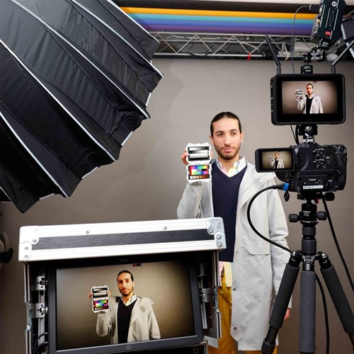 - Ett innovativt patentansökt Color Pattern Card, utformat för att dra nytta av hur video bearbetas för mer precis och nyanserad färgnoggrannhet. Det inkluderar 12 färgfält i en unik konfiguration med ett svart/50% grått/vitt färgfält i mitten, samt 6 hudtonplattor