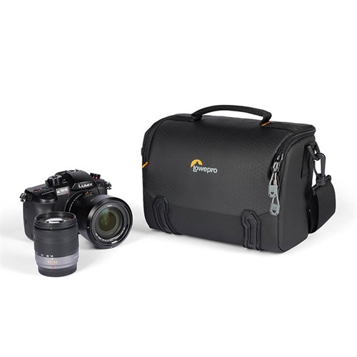 Axelväska Adventura SH 140 III är tillverkad av 84 % återvunnet och lösningsfärgat tyg och passar crop-sensor spegelfri kamera med objektiv och 2-3 extra objektiv.