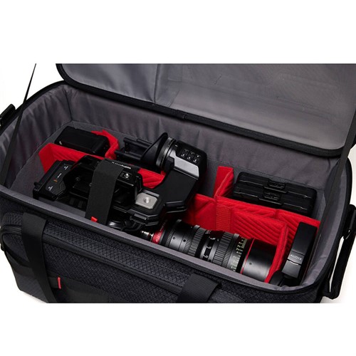 Pro Light Cineloader Medium är den mest mångsidiga modellen i serien när det gäller dimensioner och utrymme och det perfekta valet för videoteam eller enskilda videografer som behöver bära med sig mycket utrustning till inspelningsplatsen. Denna väska har testats för en lastkapacitet på 15 kg och är designad för att passa perfekt för en fullt utrustad videokamera samt tillbehör. Locket har en ny hybridstruktur för optimalt skydd där mjuka och hårda material har kombinerats för att skapa en helt unik funktion. Det formpressade EVA-locket gör att yrkesfotografer kan känna sig trygga när de transporterar utrustning, oavsett under vilka förhållanden. Det hårda locket blir som en plattform där videoutrustning kan placeras eller fästas. Locket har även tre stora transparenta meshfickor för extra tillbehör.