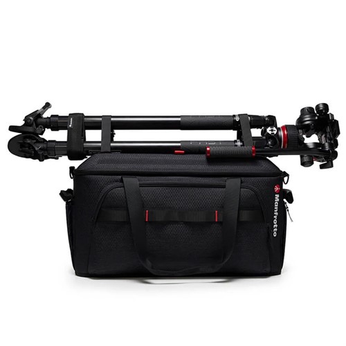 Tack vare sin rektangulära form och dimensionerna erbjuder väskan oändliga variationer och den är dessutom utrustad med fyra ytterfickor. Organiseringsmöjligheterna på framsidan ger plats för att förvara olika tillbehör som kablar och anteckningsblock. Den bakre fickan är avsedd för dokument medan de två expanderbara sidofickorna skapar extra utrymme för mer utrustning. Både fram- och bakfickorna har flera öglor för att fästa och hänga prylar som kan behövas. Huvudfacket för är utrustat med fyra M-Guard dividers, varav den ena kan delas på mitten för ännu större flexibilitet när du ska anpassa väskans interiör till din utrustning. Det finns också en inbyggd elastisk rem för att hålla kameran stadig när du är på språng.
