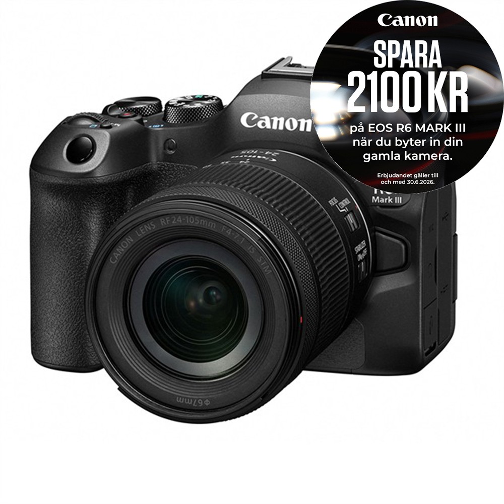 EOS R6 Mark III ger optimal balans mellan kvalitet och prestanda: enastående detaljrikedom för att förverkliga din vision och otrolig hastighet för att fånga varje ögonblick. Den här kraftfulla kameran har en sensor på 32,5 megapixlar, serietagning med 40 b/s, intelligent autofokusföljning och mängder av egna inställningar. Den är byggd för att matcha ditt tempo, ditt arbetsflöde och dina kreativa ambitioner.